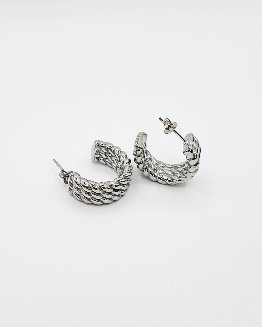 Šie sidabro spalvos auskarai išsiskiria išraiškingu pynimo reljefu, primenančiu tankų grandinėlės motyvą. Jie subtiliai spindi,...