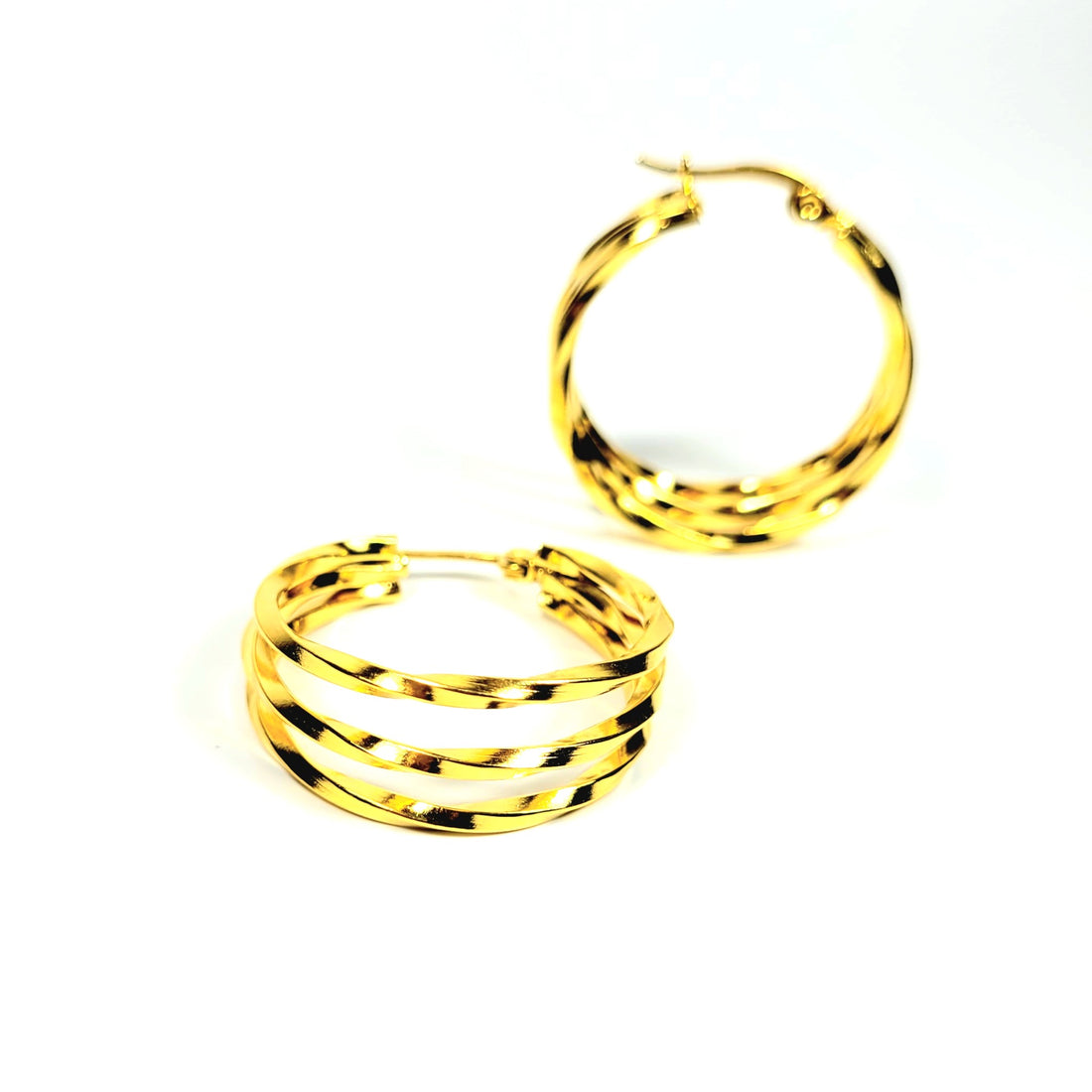 Aukso spalvos klasikiniai 3 linijų auskarai