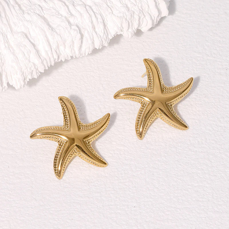 Aukso spalvos jūrinės žvaigždės formos auskarai