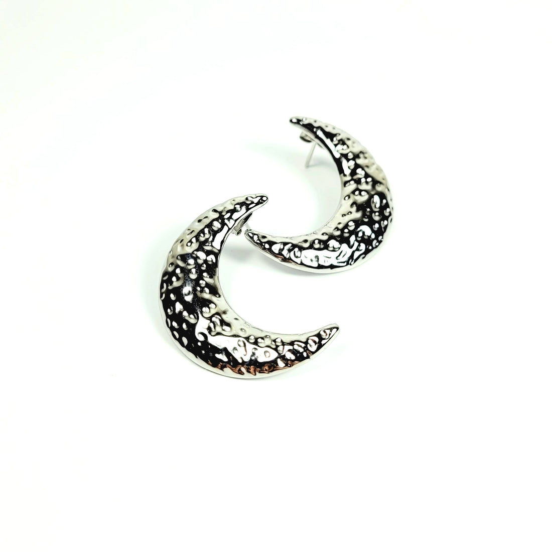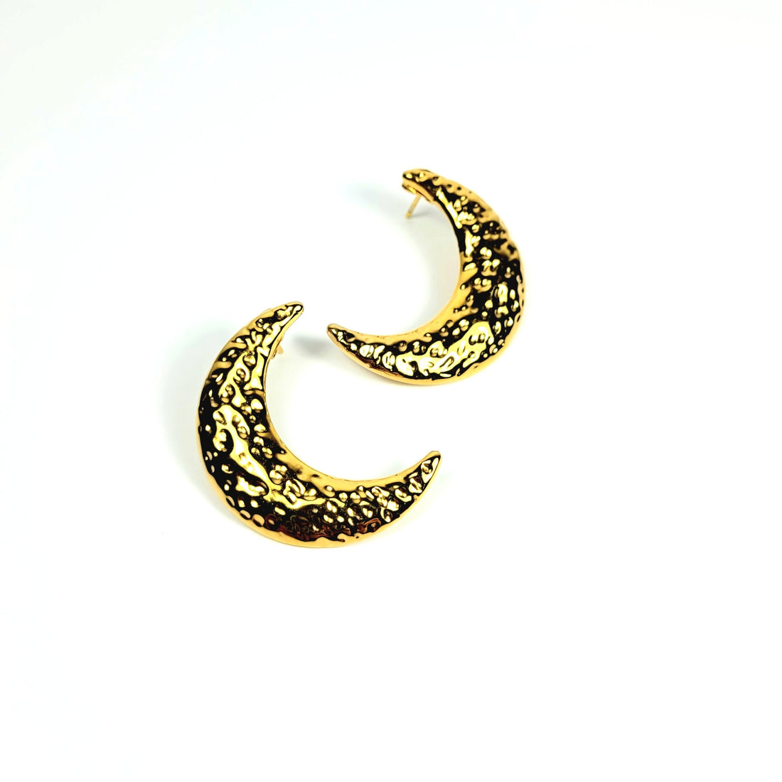 | nerūdijantis plienas | Įspūdingi auskarai, kurių forma primena mėnulį, išsiskiria ryškiu, kalto metalo paviršiumi....