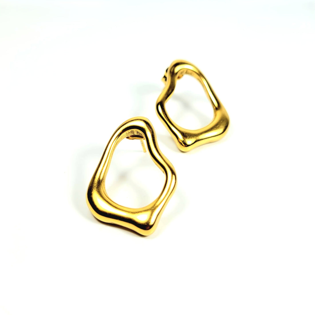Aukso spalvos modernūs auskarai su banguotu siluetu