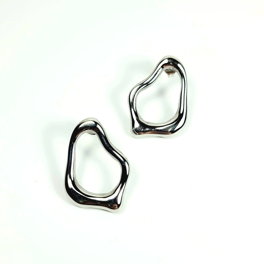 | nerūdijantis plienas | Šie auskarai išsiskiria netaisyklinga, organiška forma, kuri subtiliai atspindi šviesą ir...