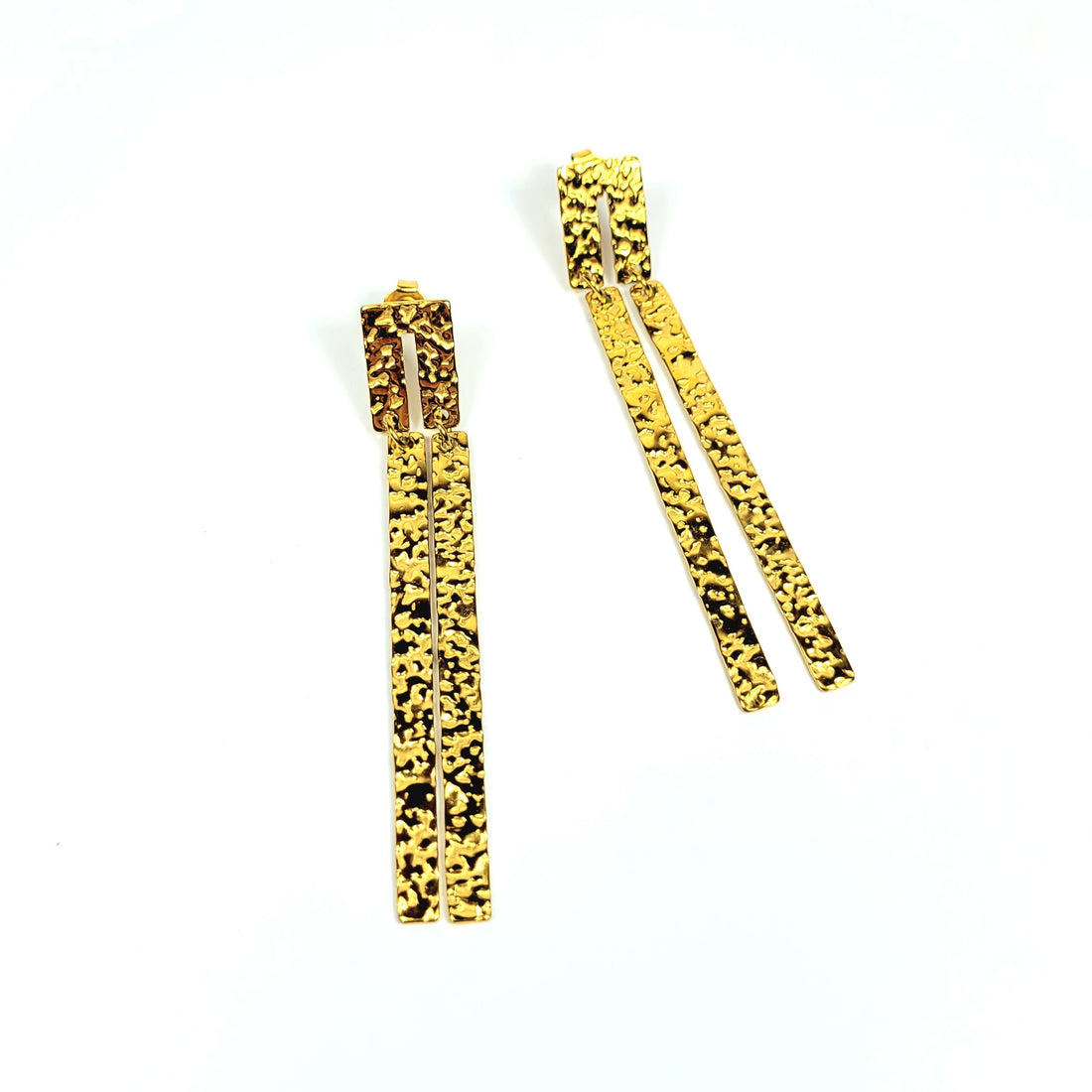 Aukso spalvos modernūs ilgi stačiakampiai auskarai