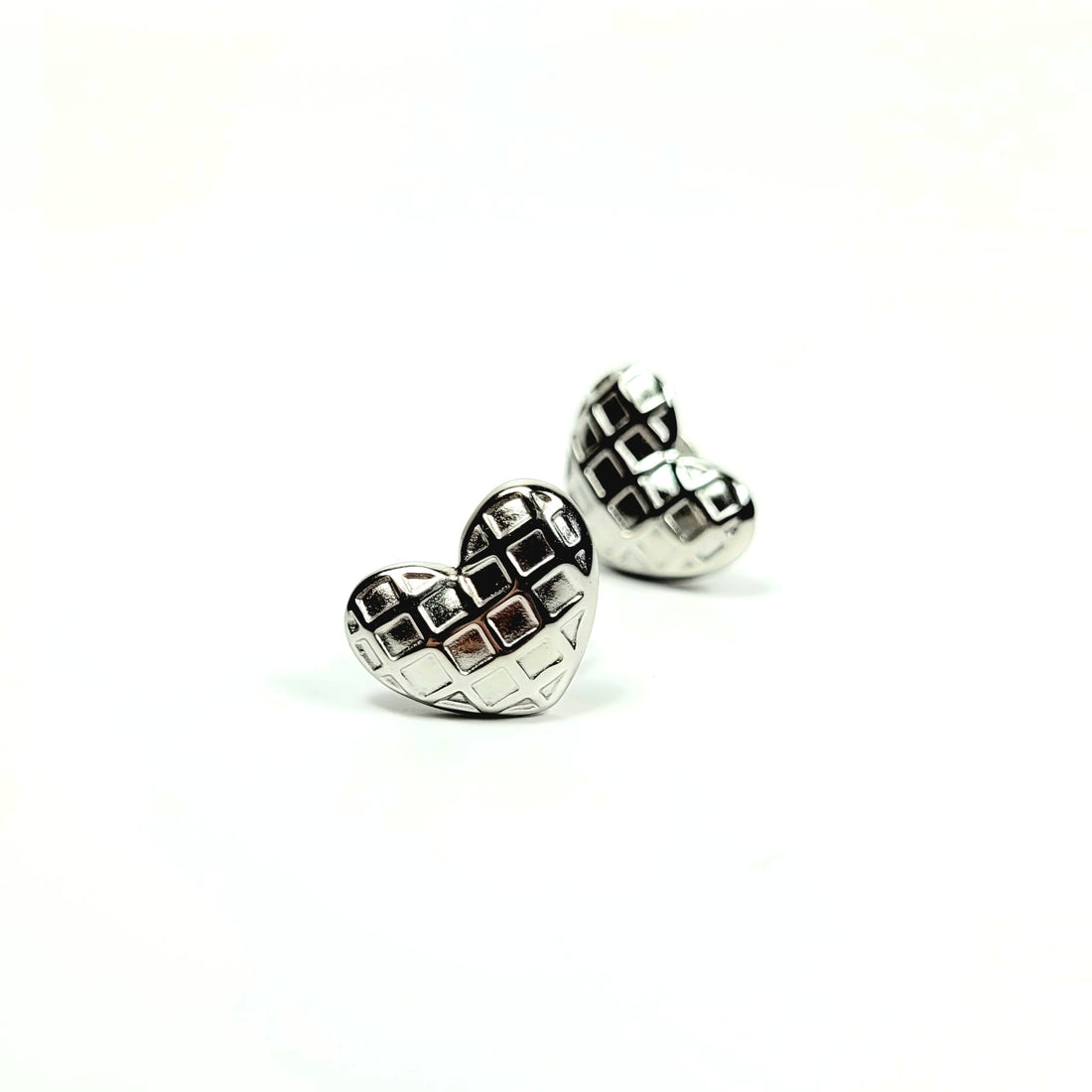 Sidabro spalvos širdelės formos auskarai su kvadratėliais