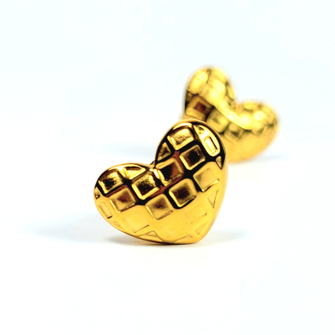 Aukso spalvos širdelės formos auskarai su kvadratėliais