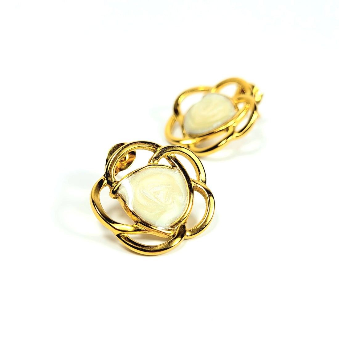 Aukso spalvos gėlės formos auskarai su baltu centru