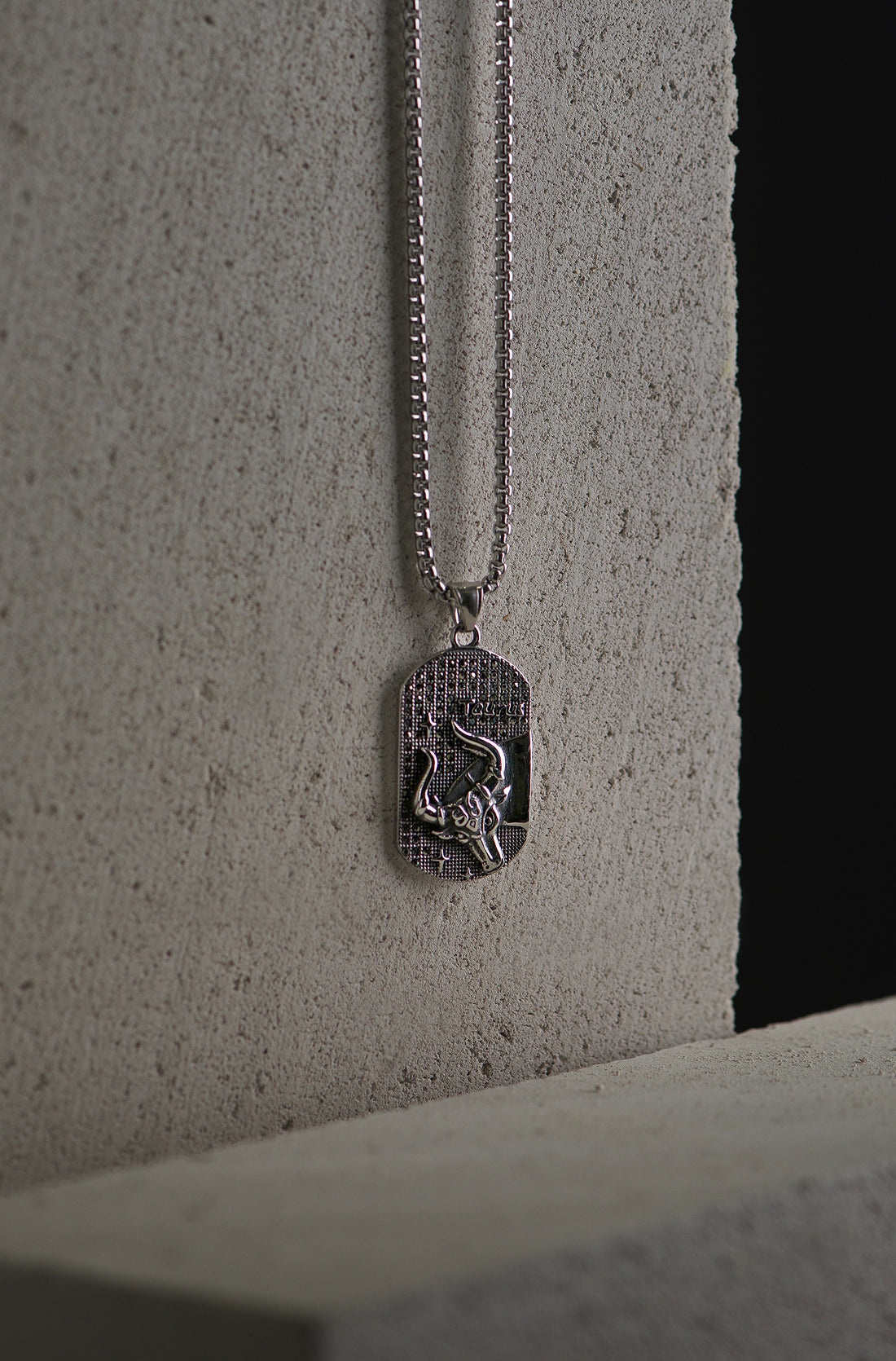 Sidabro spalvos 70cm kaklo papuošalas su jaučio zodiaku