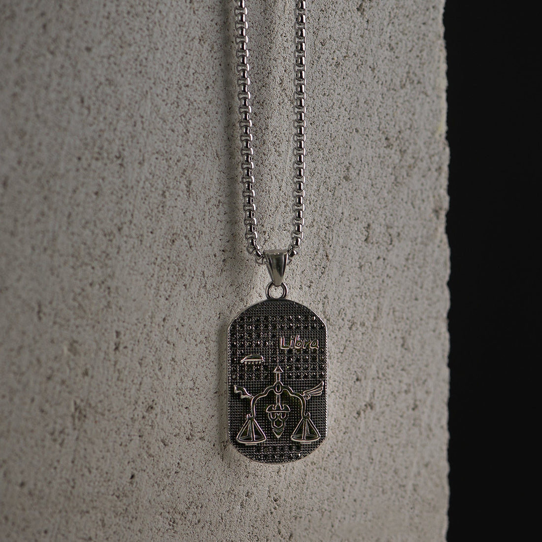 Sidabro spalvos 70cm kaklo papuošalas su svarstyklių zodiaku
