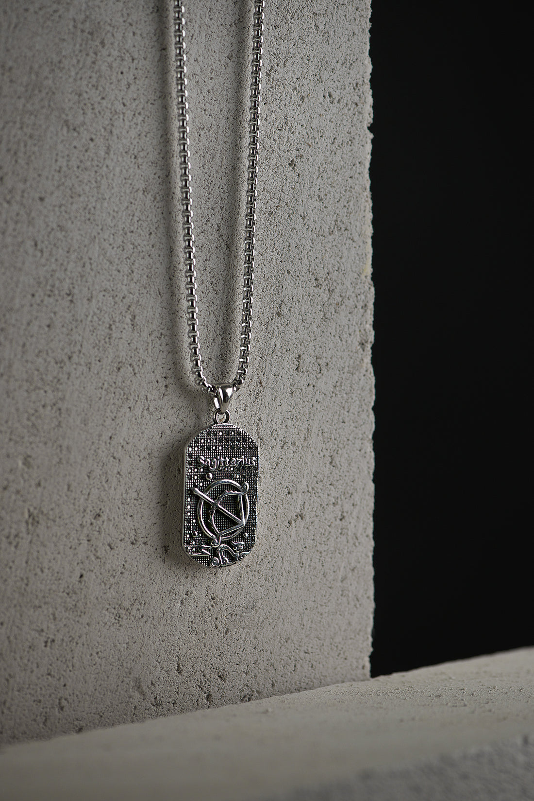 Sidabro spalvos 70cm kaklo papuošalas su šaulio zodiaku