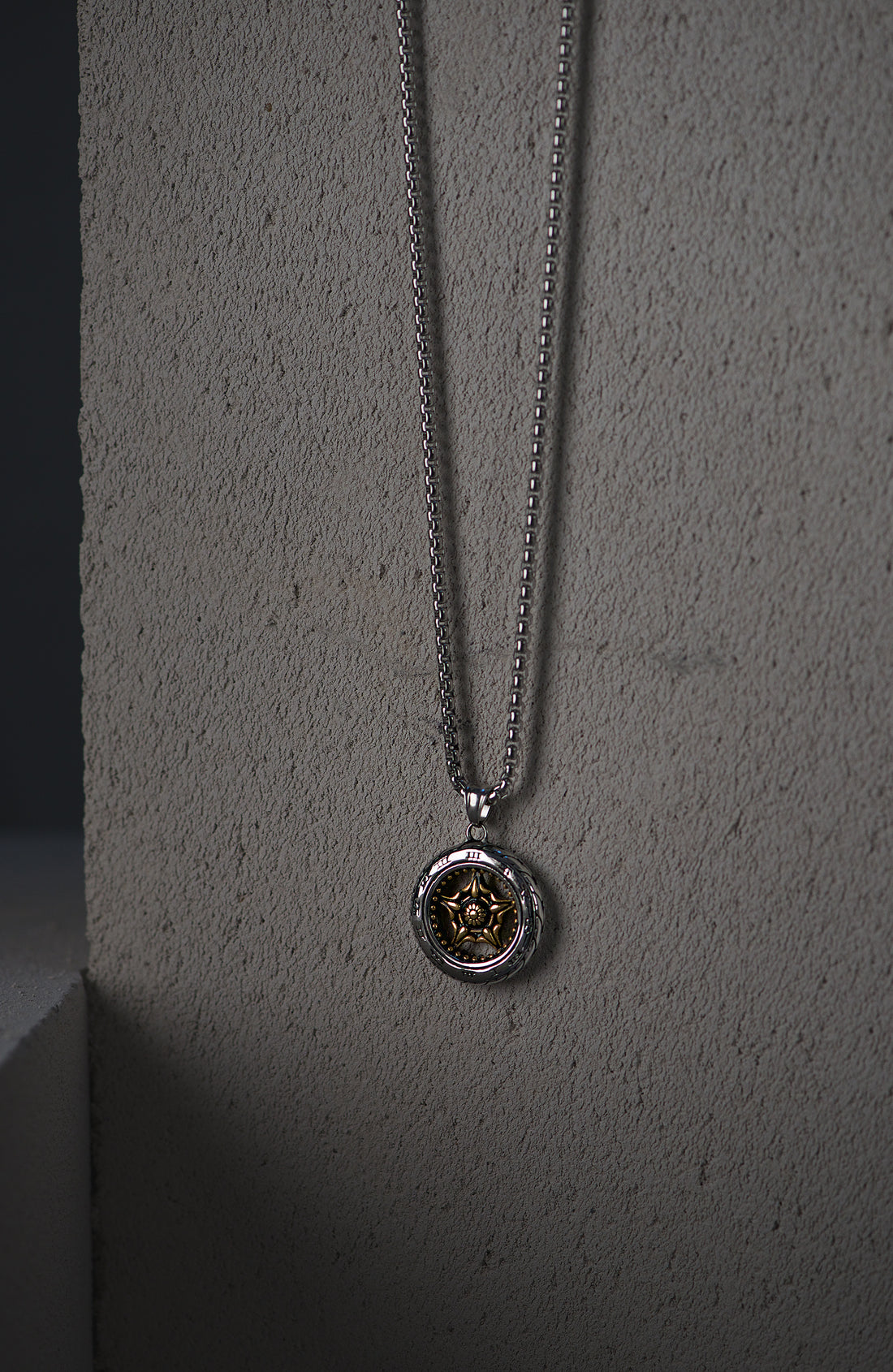 Sidabro spalvos grandinėlė su rato formos pakabuku
