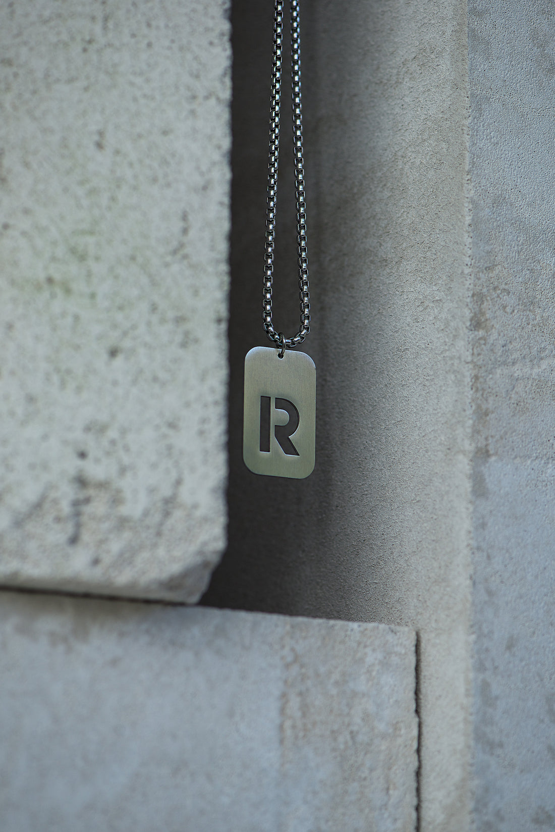 Sidabro spalvos pakabukas R raidė su grandinėle, 70 cm
