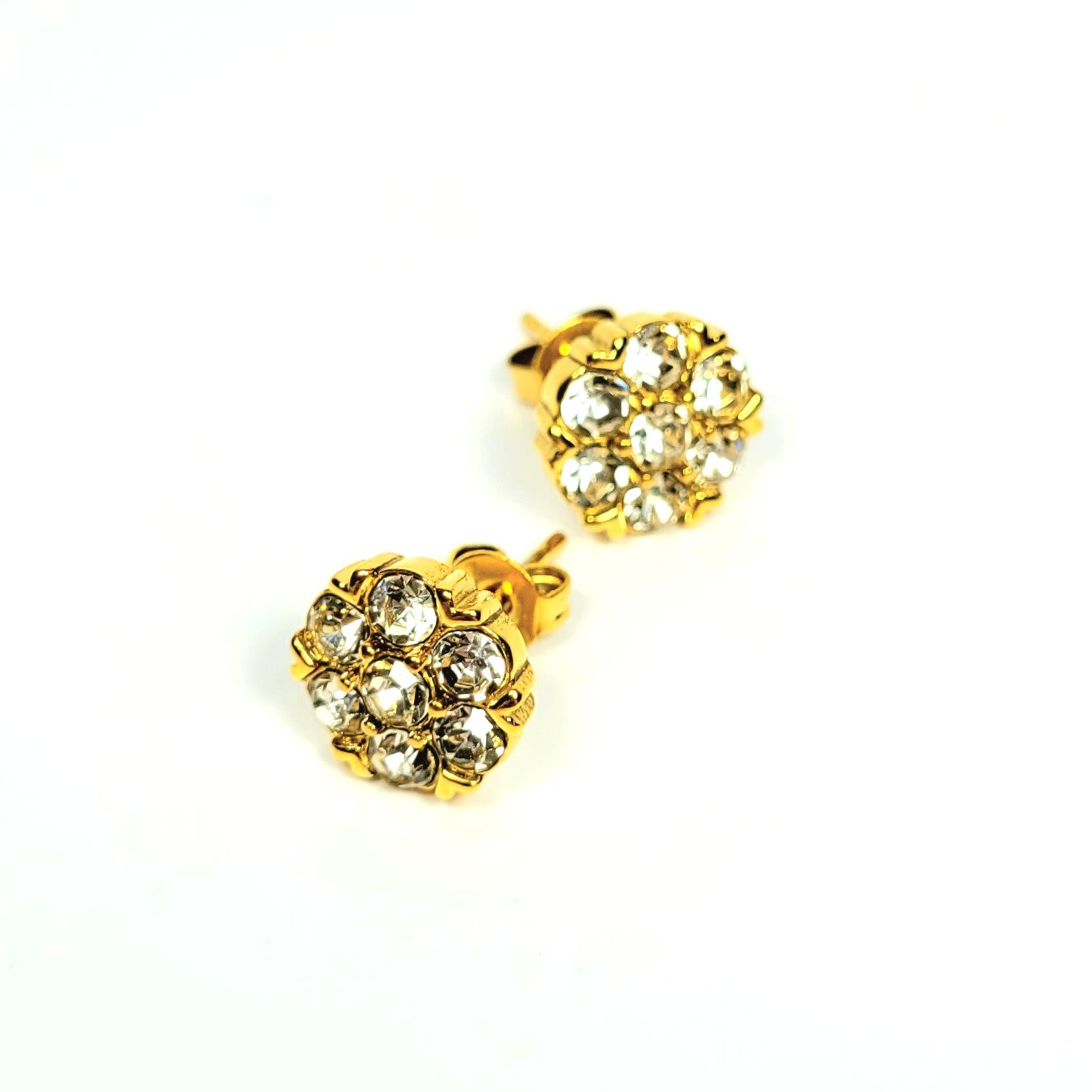 Šie auskarai – elegantiškas derinys tarp klasikos ir šviesos. Auksinis pagrindas subtiliai pabrėžia žiedlapio formos dizainą, o skaidrūs akmenukai sukuria ryškų, bet neperkrautą spindesį. Jie puikiai tinka norinčioms lengvai atnaujinti kasdienį įvaizdį ar suteikti jam šventiškumo. Maži, patogūs ir universalūs – tinka tiek biurui, tiek vakarui. Pagaminti iš nerūdijančio plieno, todėl išlieka atsparūs kasdieniam dėvėjimui ir nepraranda savo auksinio žvilgesio.