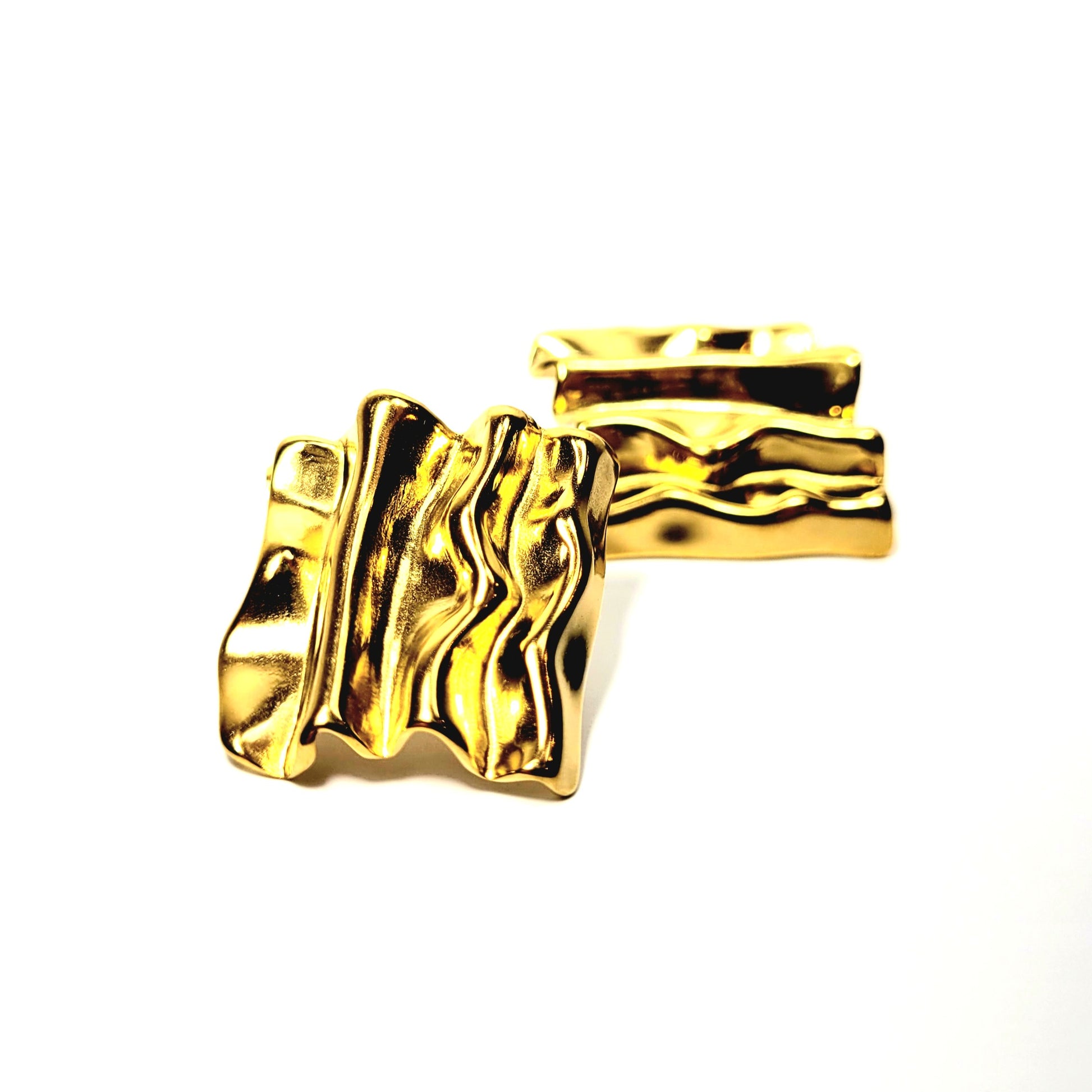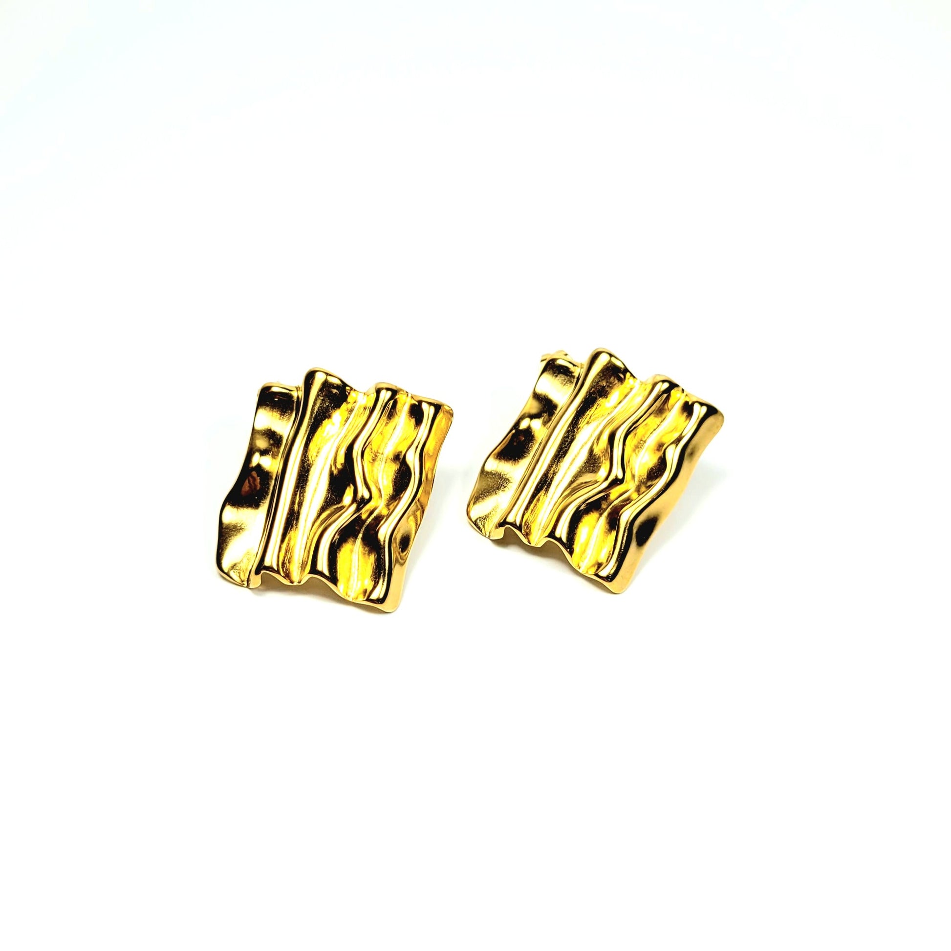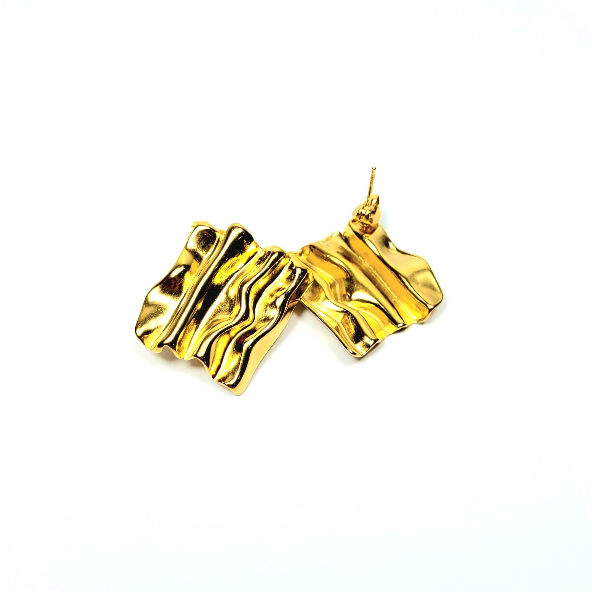 Auksinės spalvos modernūs lamdyto efekto auskarai