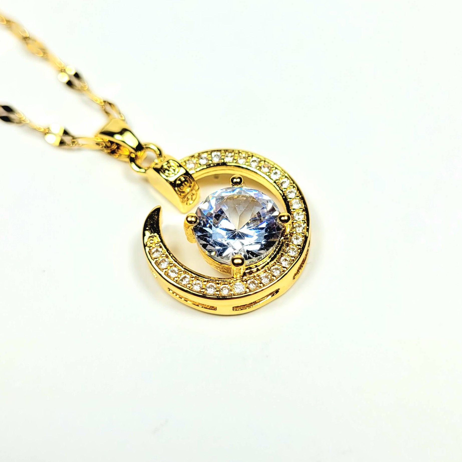 Iš nerūdijančio plieno pagaminta auksinė grandinėlė spindi subtilia prabanga ir išskirtiniu dizainu. Pakabukas – elegantiškas pusmėnulis, puoštas mažais cirkonio kristalais, o jo centre įkomponuotas didesnis, akinamai spindintis akmuo. Šis derinys simbolizuoja šviesą ir moterišką energiją, todėl puikiai tinka tiek kasdieniam, tiek šventiniam įvaizdžiui. Grandinėlė yra lengva, patogi ir ilgaamžė – nerūdijantis plienas užtikrina, kad spindesys išliktų nepakitęs laikui bėgant.
