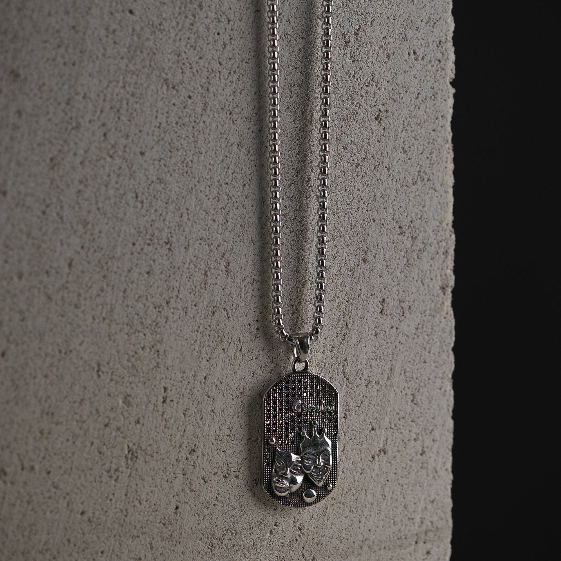 Sidabro spalvos 70cm kaklo papuošalas su dvynių zodiaku