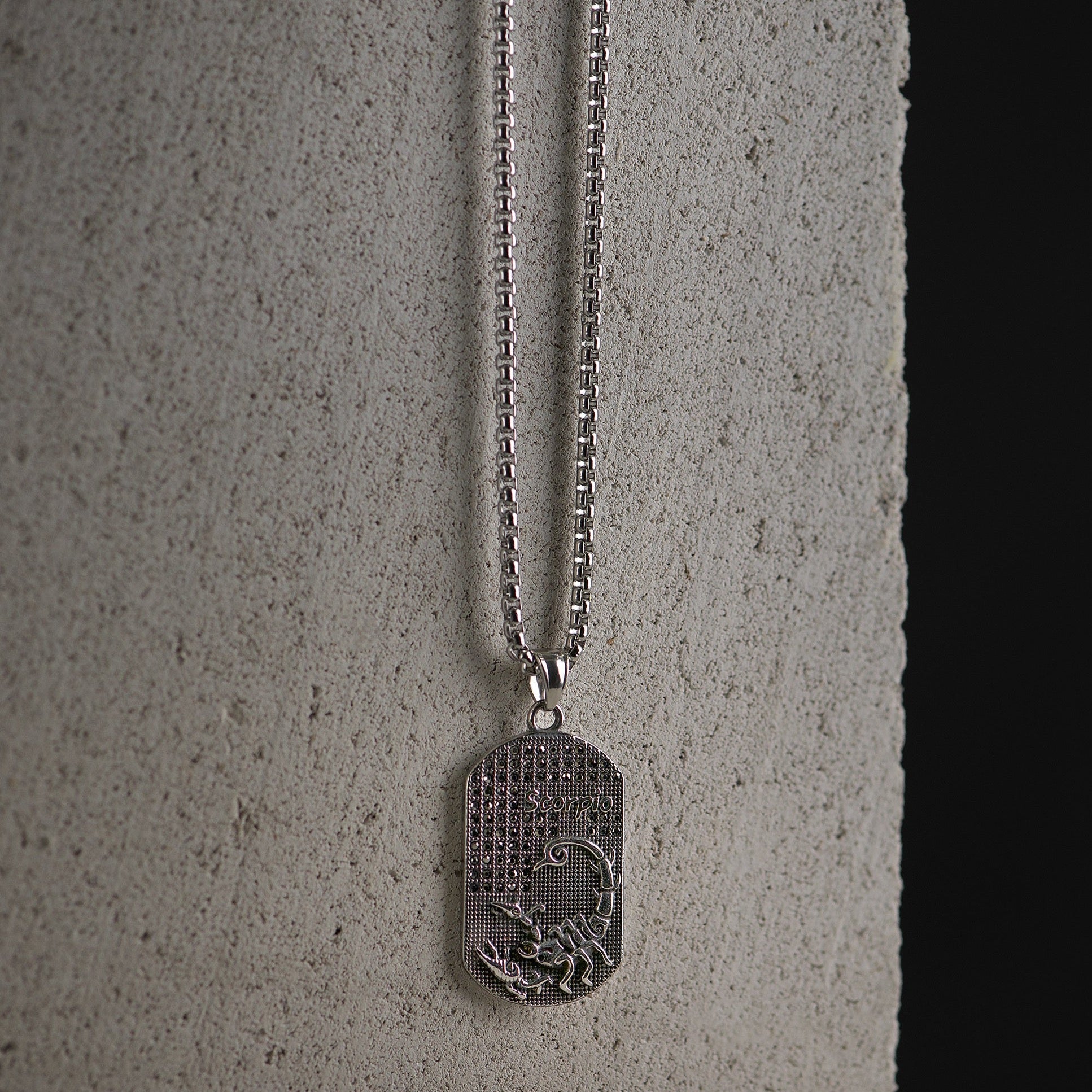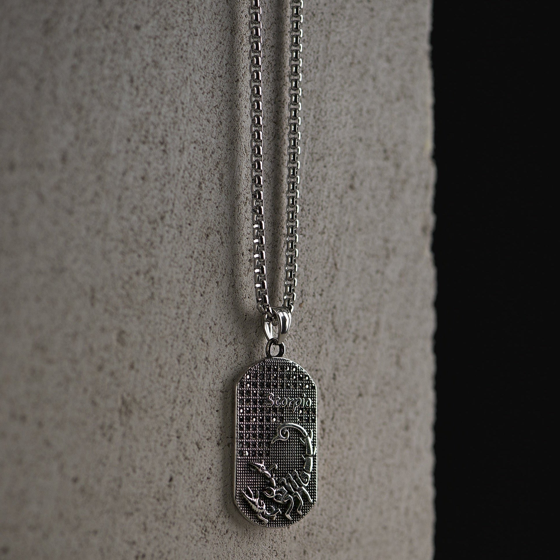 Sidabro spalvos 70cm kaklo papuošalas su skorpiono zodiaku