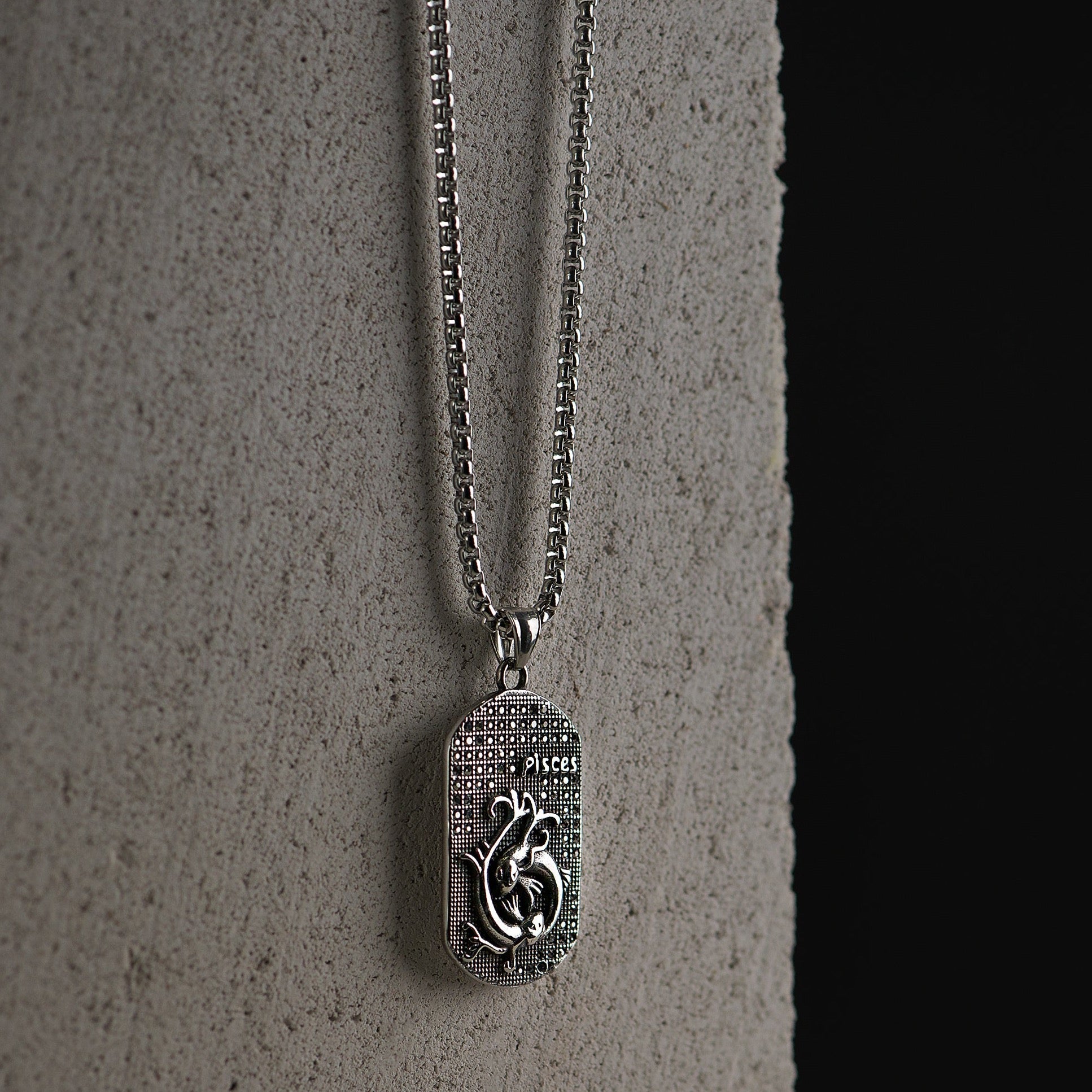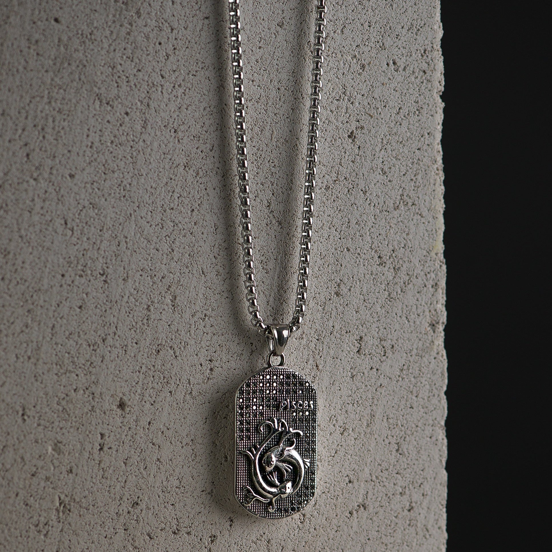 Sidabro spalvos 70cm kaklo papuošalas su žuvų zodiaku