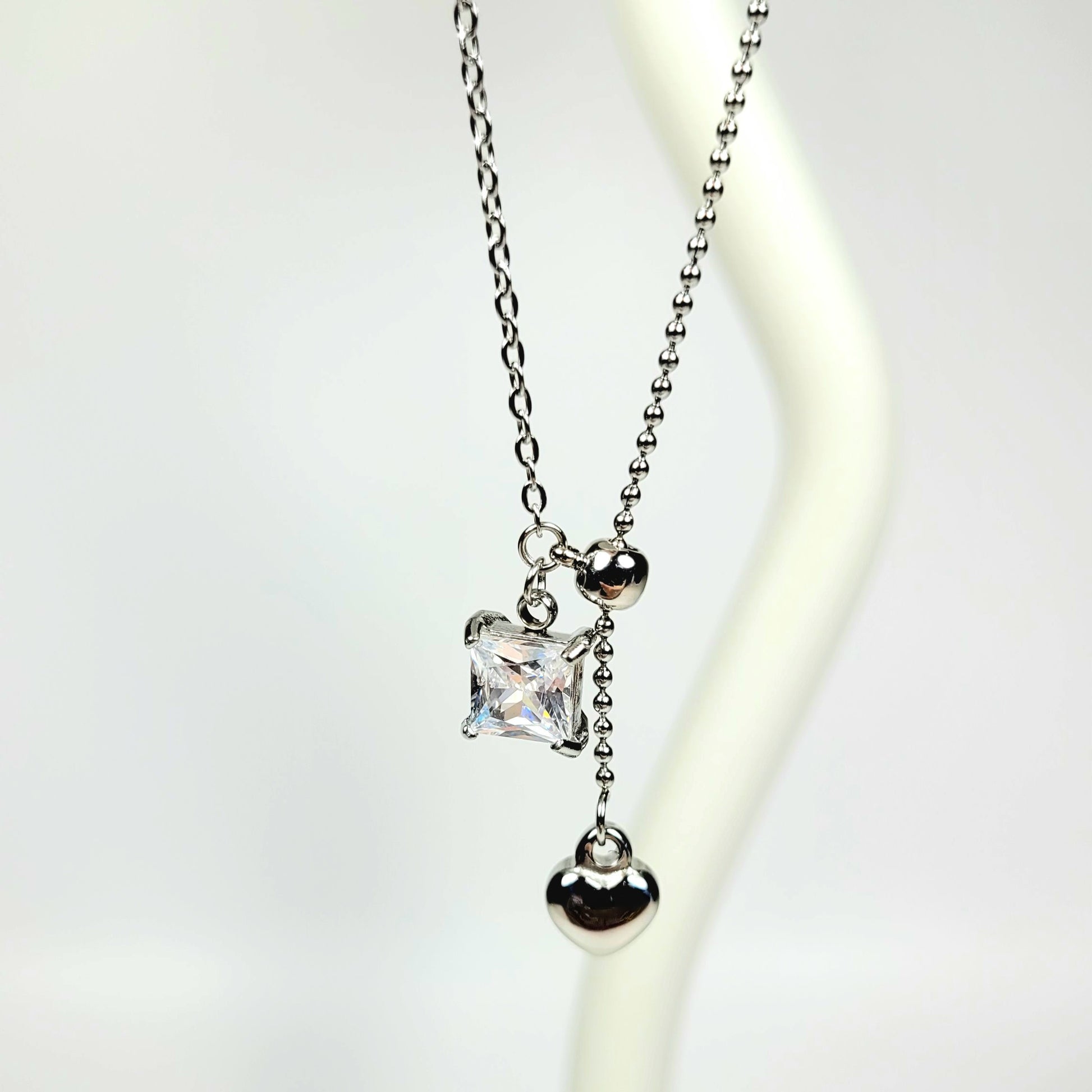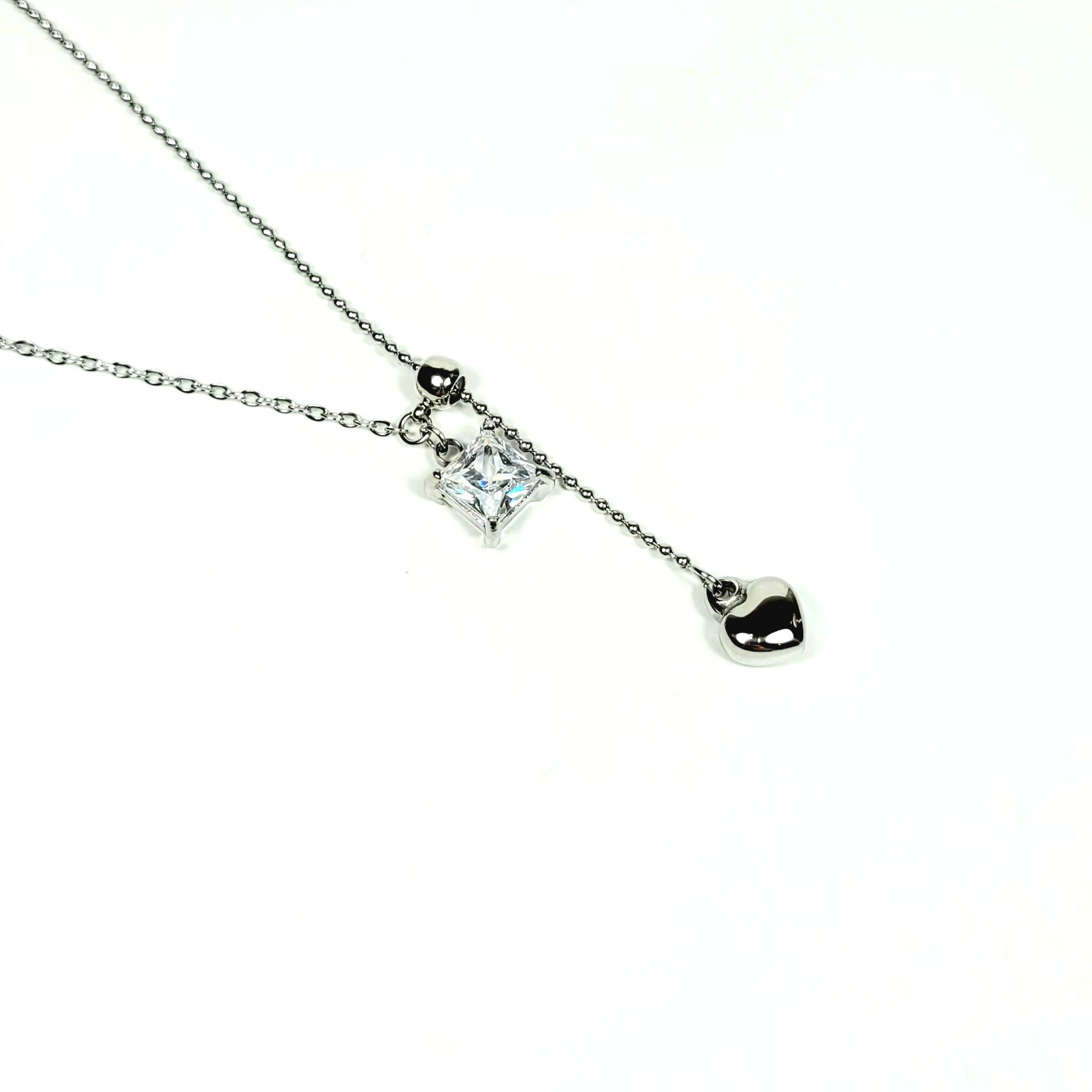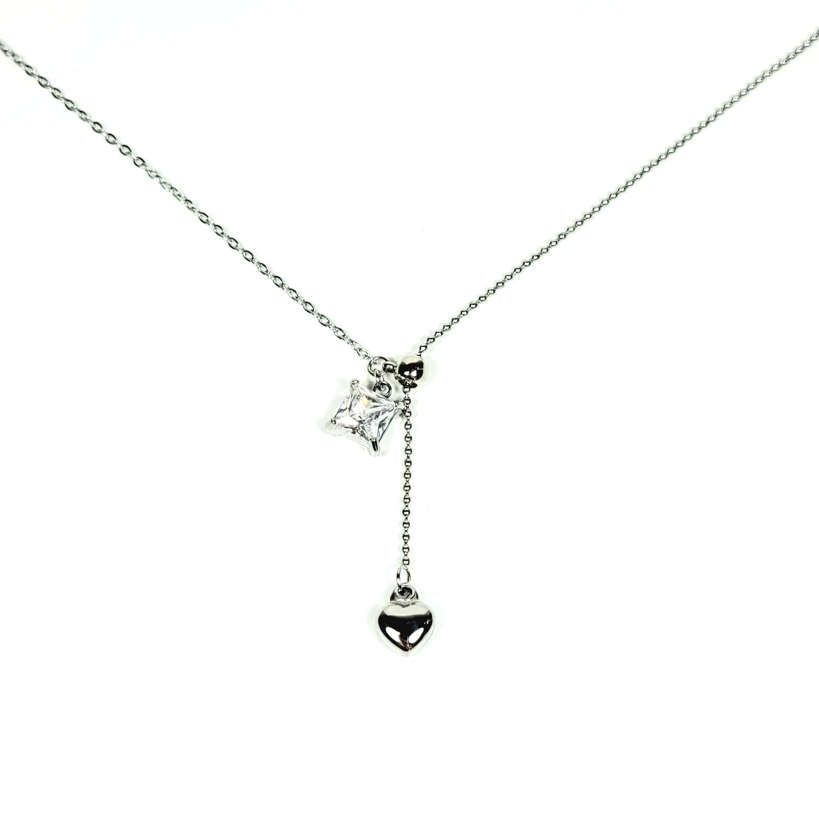 Iš nerūdijančio plieno pagaminta sidabrinė grandinėlė žavi subtiliu ir moterišku dizainu. Lengvai krintantis širdelės ir kvadratinio kristalo duetas sukuria harmoningą balansą tarp romantikos ir elegancijos. Blizgus paviršius atspindi šviesą, suteikdamas kaklui švelnaus spindesio. Tai puikus pasirinkimas tiek kasdienai, tiek ypatingoms progoms, kai norisi subtiliai išryškinti savo stilių.