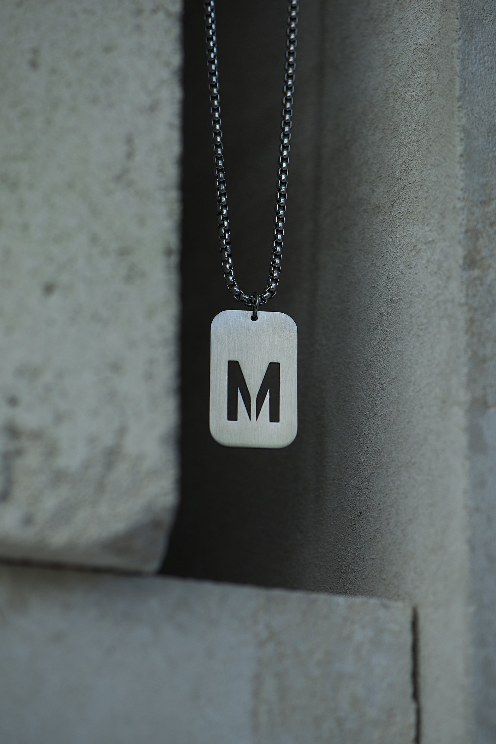 Sidabro spalvos pakabukas M raidė su grandinėle, 70 cm