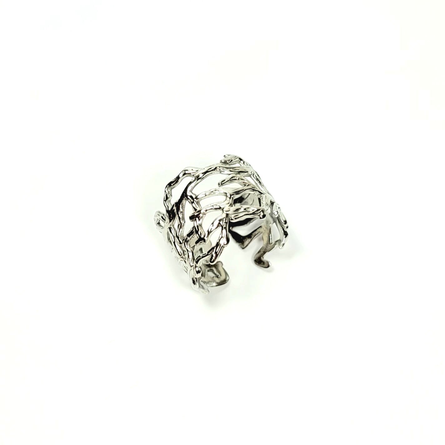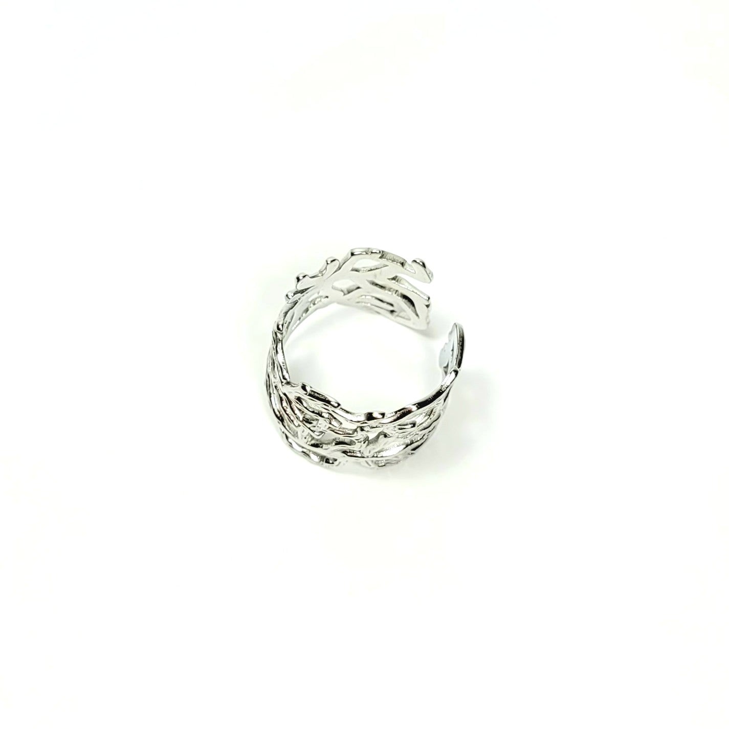 Sidabro spalvos žiedas su šakų motyvu
